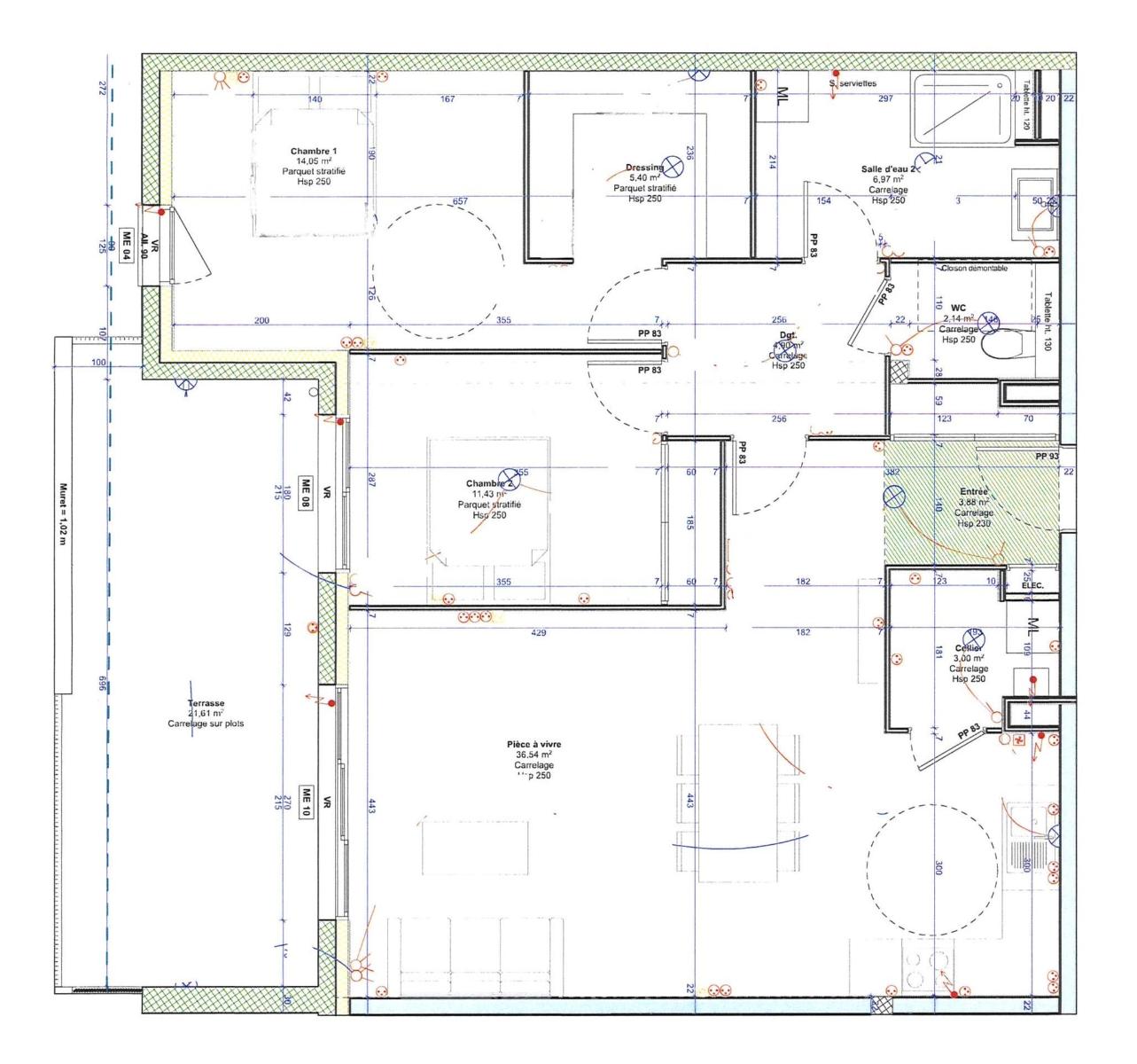 -- Une chambre de 14.05 m² avec un dressing de 5.40 m².